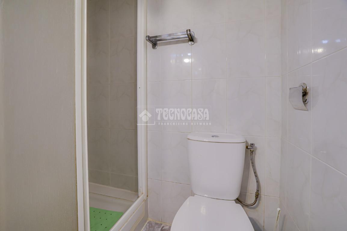 El baño cuenta con plato de ducha, práctico y funcional.